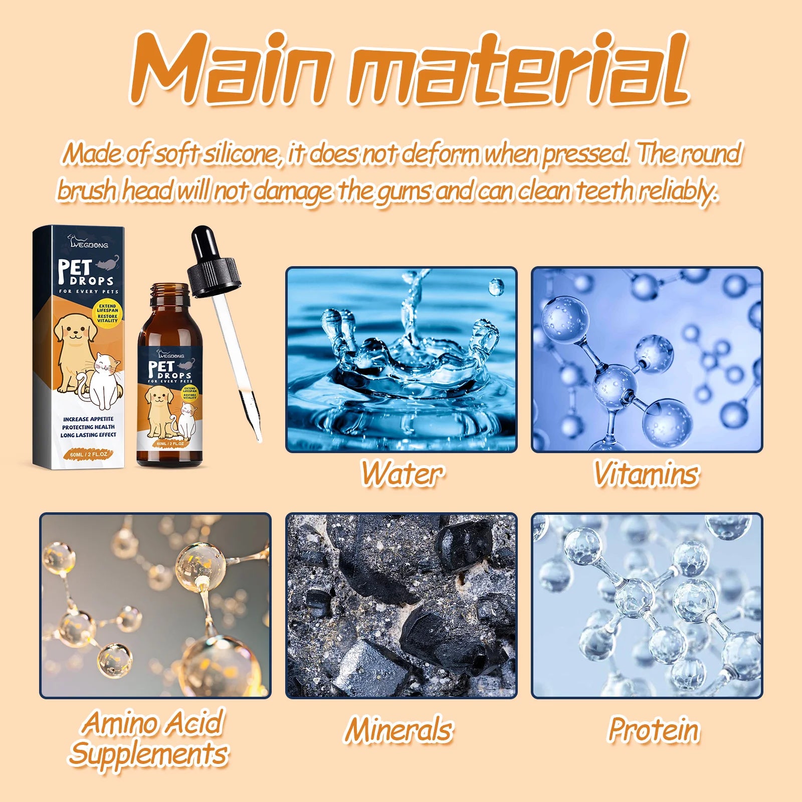 Features3: 60ml pet multivitamin drops enhance vitality and energy